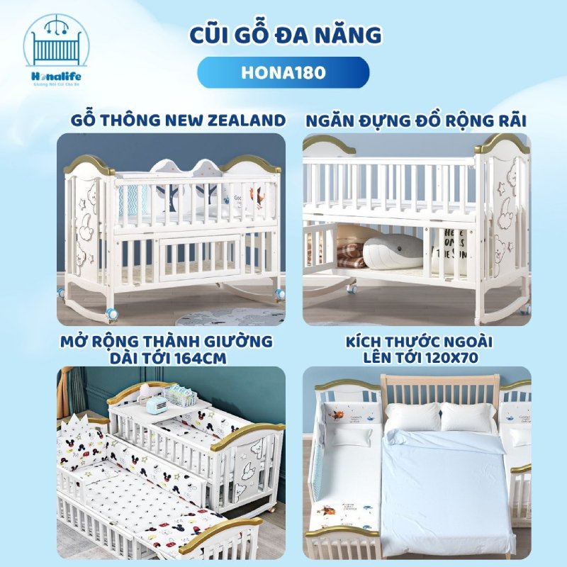 HONALIFE là thương hiệu uy tín trên thị trường, chuyên cung cấp các sản phẩm nôi, giường, cũi cho bé, đặc biệt là các sản phẩm giường ghép cho bé với bố mẹ. Với sự cam kết về chất lượng, các sản phẩm của HONALIFE luôn được kiểm định nghiêm ngặt trước khi đến tay người tiêu dùng, đảm bảo độ an toàn tuyệt đối cho trẻ nhỏ.